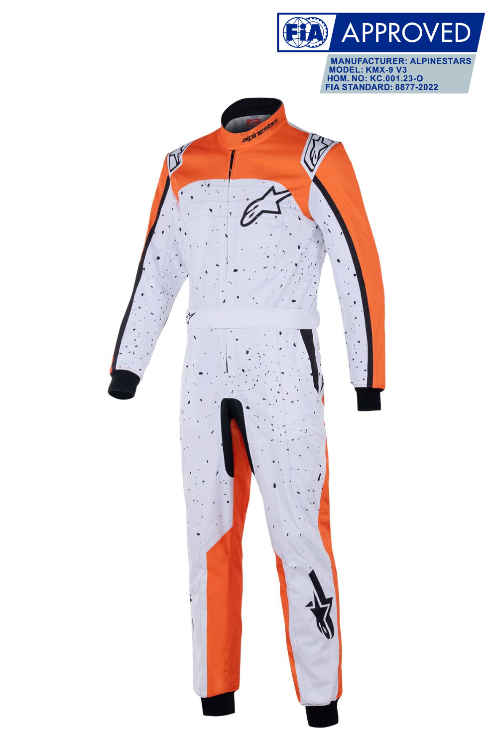 Alpinestars KMX-9 V3 Graph 6 Weiß Orange: FIA 8877-2022 Rennanzug. Leicht, abriebfest, atmungsaktiv und flexibel. Komfort und Sportlichkeit garantiert.