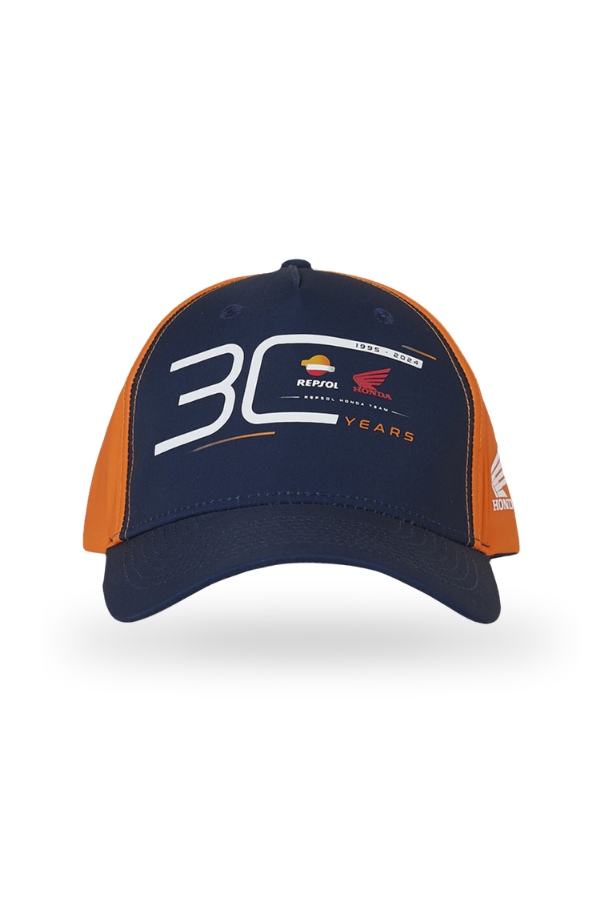 Offizielle Repsol Honda HRC Racing Moto GP 30 Jahre Kappe. Moderne Baseballform, 30 Years Repsol Honda Logo, geflügeltes Honda Logo, verstellbar, 100% Polyester.