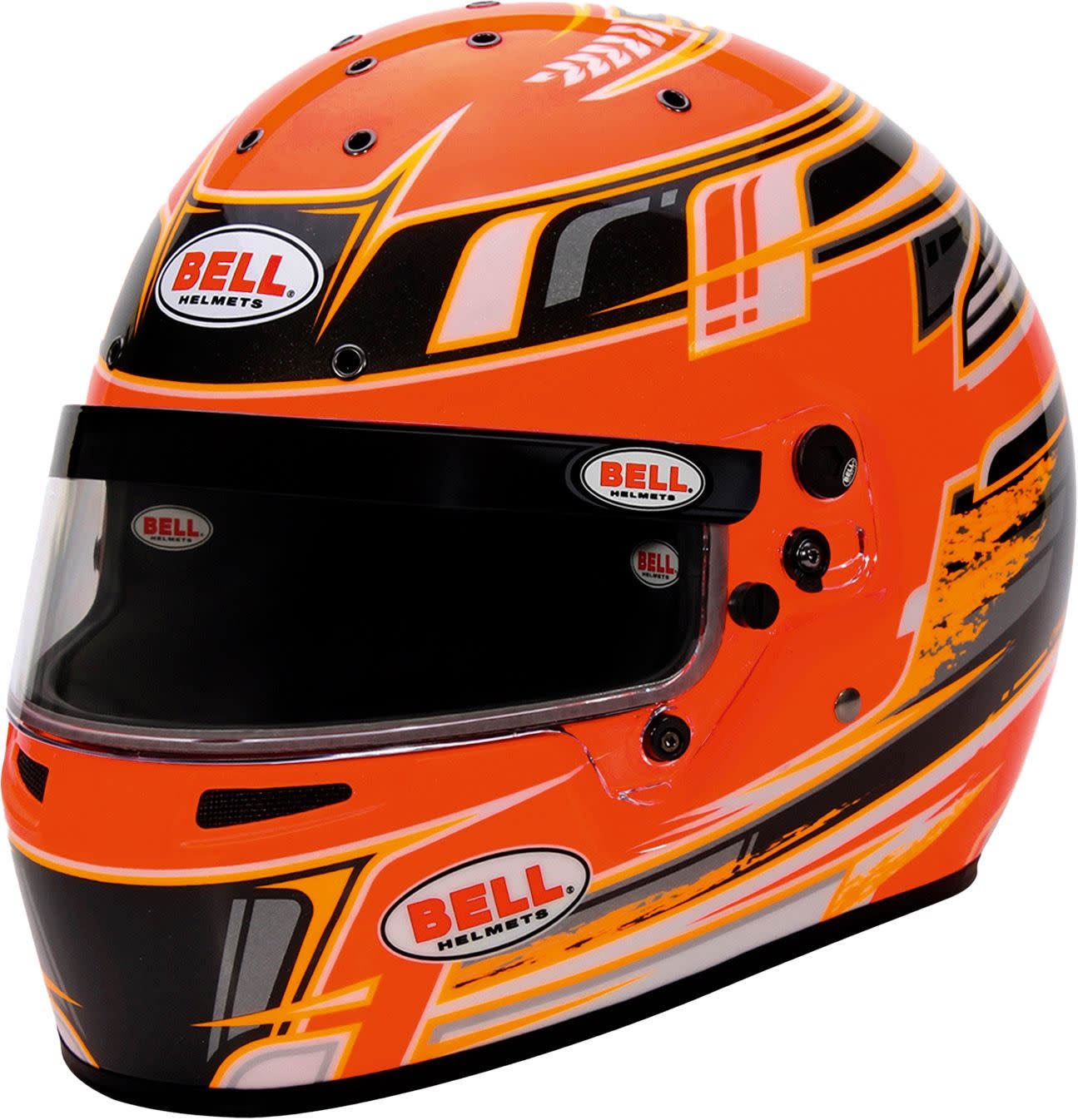 The Bell KC7 CMR Anthracite Orange is an ultra-light helmet for young drivers (children and teenagers up to 18 years old). SNELL CMR2016 approved, featuring excellent ventilation and an anti-fog visor. Carbon-Kevlar-fibreglass shell.
