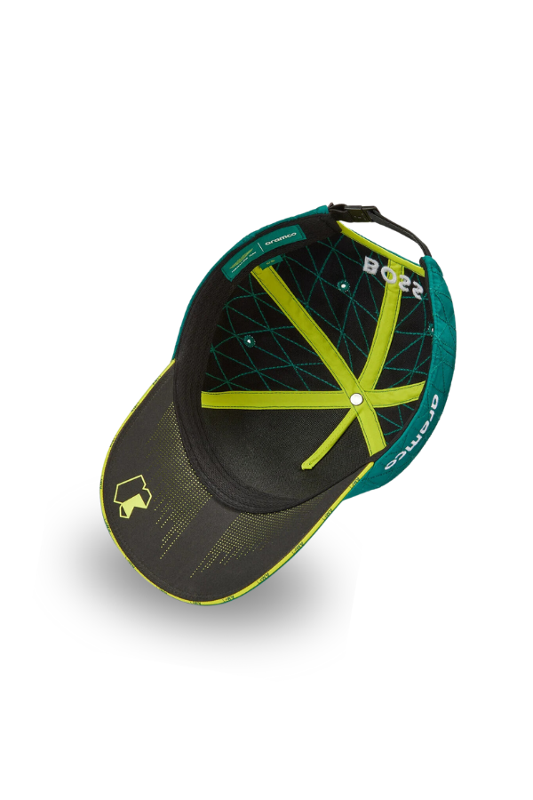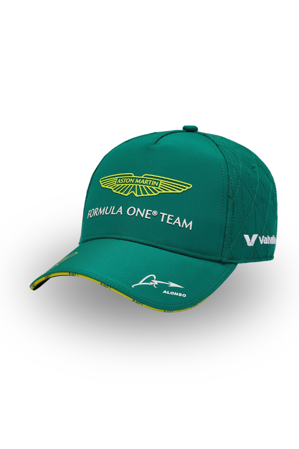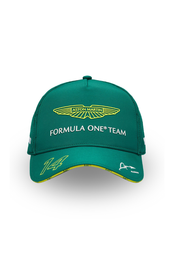 Official Aston Martin F1 cap with driver Fernando Alonso's number 14 as worn by the famous driver. High-quality, it features Aston Martin car-inspired quilted back panels and precision laser perforation under the visor, as well as all the updated Aston Martin Aramco Formula One® team sponsor logos.