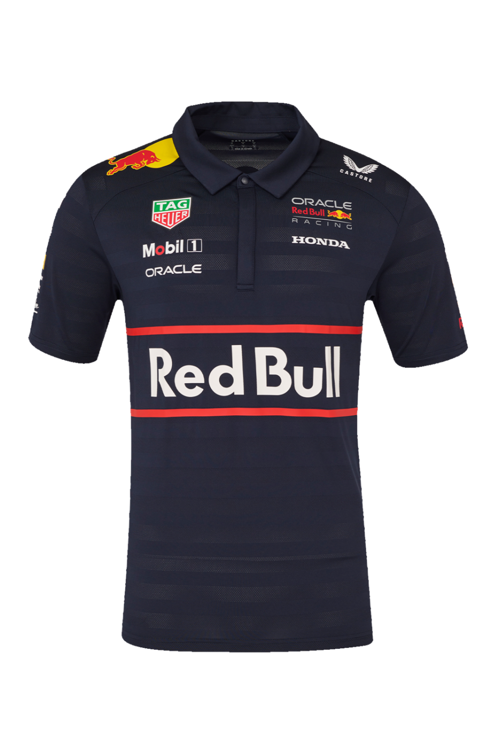 Official Red Bull Racing 2025 polo in Night Sky blue. Comfortable and stylish, with team and sponsor logos. Perfect for F1 fans.