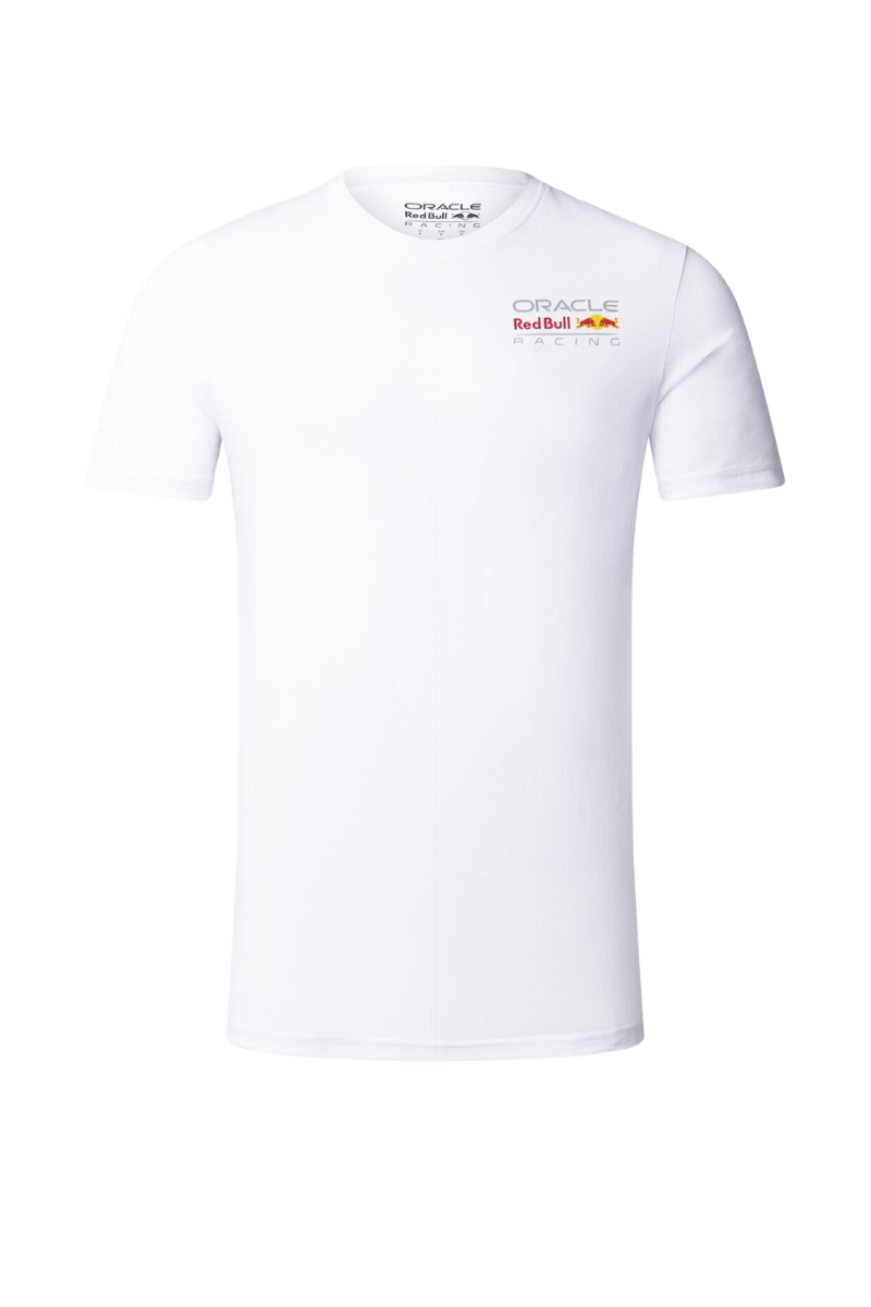 A classic and iconic design in the collection of any fan of the Oracle Red Bull Racing team. In white, made from 100% cotton with a bold print featuring the team's name and logo at the back.