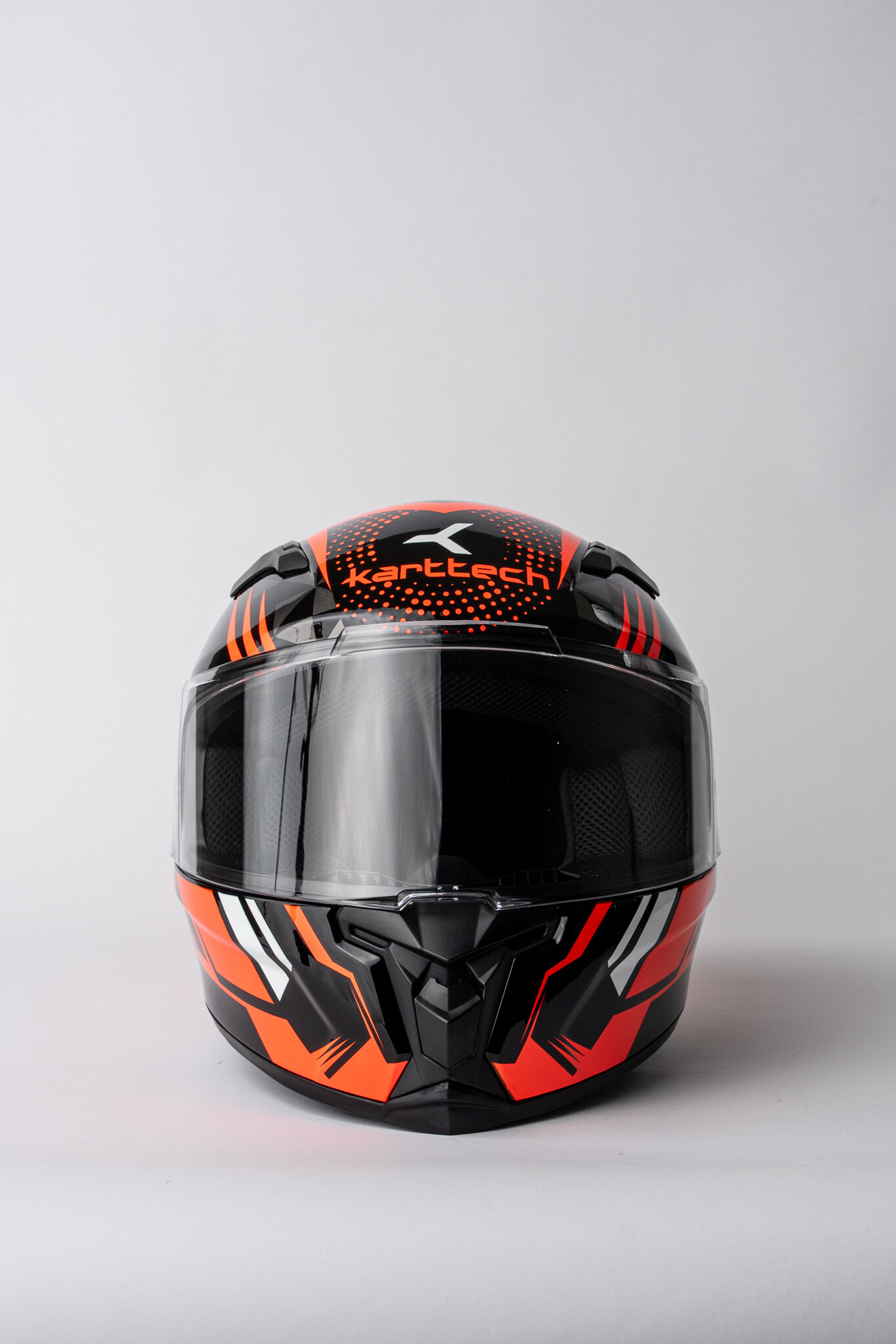The Karttech Leopard Red Fluo helmet has been approved by the most demanding international homologation in Europe. ECE/ONU 22.05.P (EU) This helmet is equipped with light anti-scratch visors that are easy to remove.