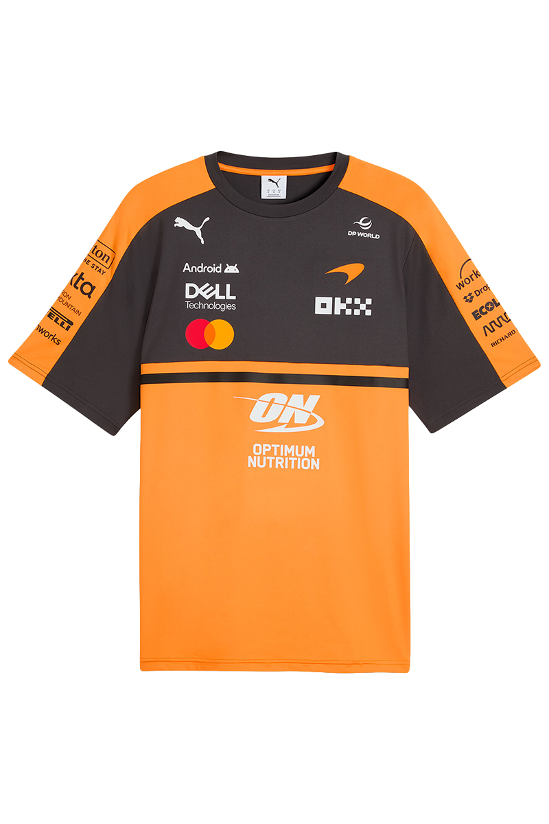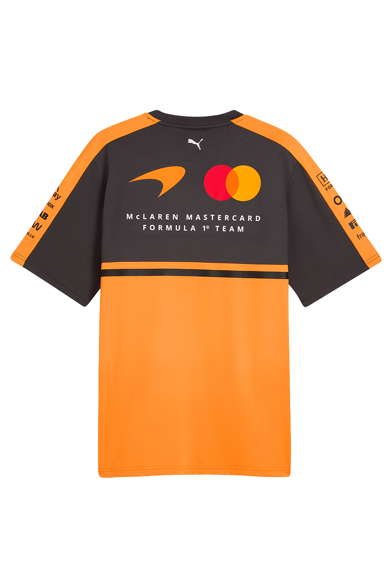 McLaren 2026 Team T‑Shirt – Papaya Show your support for the McLaren Mastercard Formula 1 Team with this official 2026 Team Replica T‑Shirt. Designed with a sleek, race‑ready look and comfortable everyday fit, it’s perfect for race weekends or casual wear. It features authentic McLaren team and partner logos, short sleeves and a classic crew neckline. Made from a soft, stretch‑enhanced fabric blend for durability and comfort.