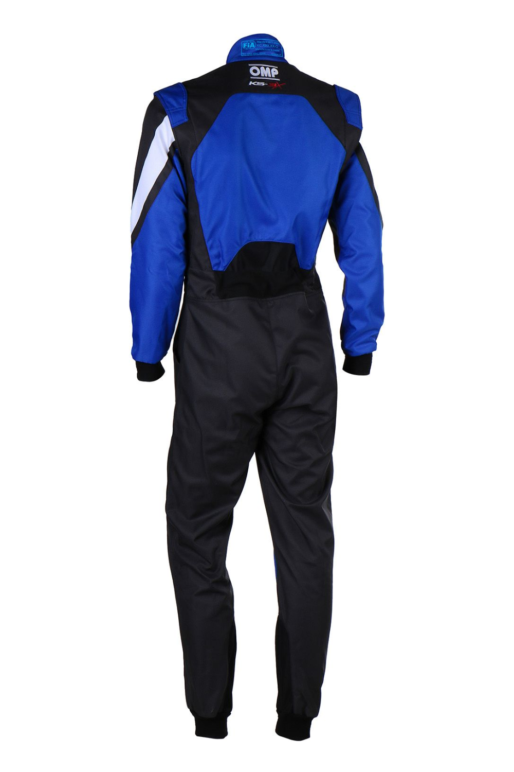 The OMP KS-3X Racing Suit Black and Blue for kids is designed for comfort and performance on the track.