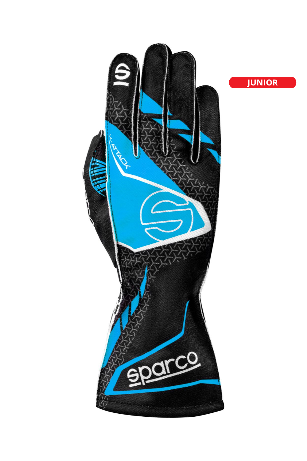 Sparco K-Attack Gloves Adult Blue and Black: modern design and top performance. Ergonomic fit, pre-shaped fingers, and 3D silicone palm for superior grip. Perfect for demanding drivers. Sizes 4-5-6 is for children.