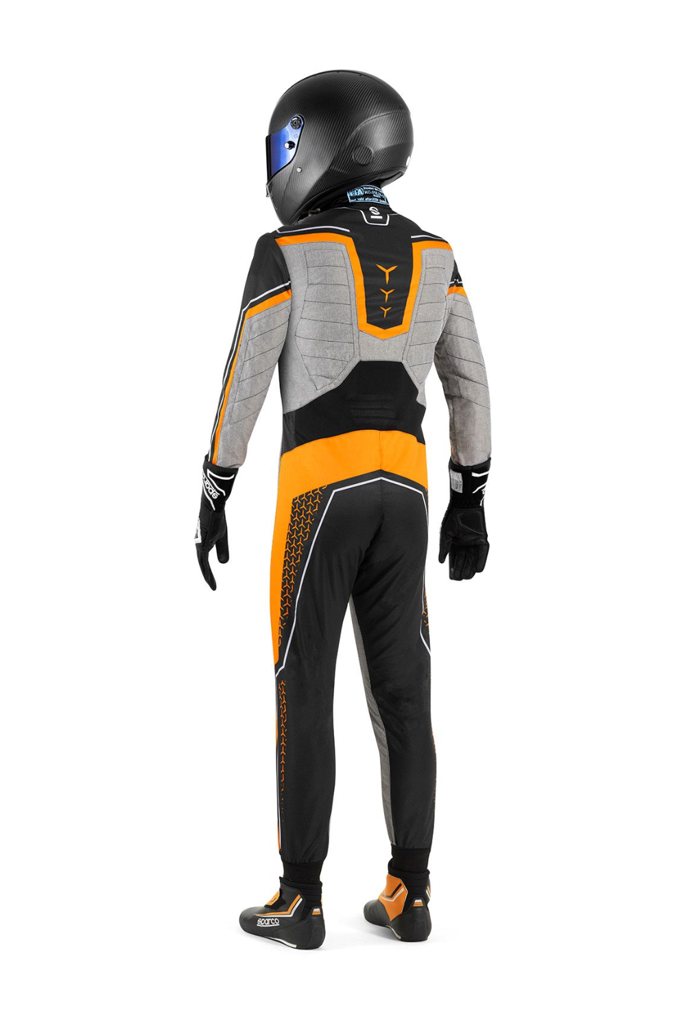 The Sparco Superleggera K racing suit in black and orange is designed for kids karting enthusiasts who demand top-tier performance. Made from an ultra-lightweight 300 g/m² fabric, it ensures exceptional comfort and maximum breathability. The patented AIR-IN system promotes continuous airflow, effectively cooling the driver.