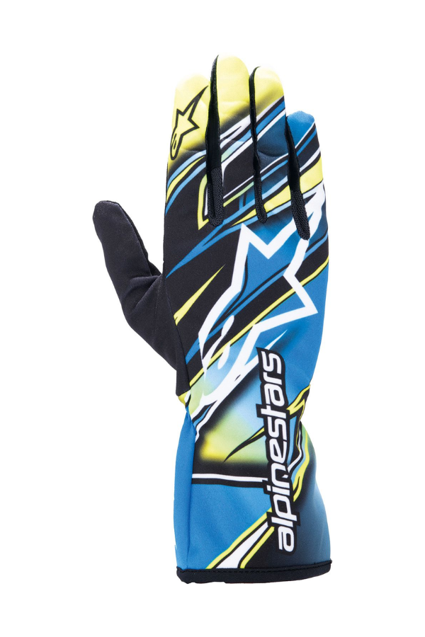 Gants de karting Alpinestars Tech-1K Race V2 "Competition" jaune et bleu. Parfaits pour tous les pilotes qui ne font pas de compromis entre adhérence et style! Super résistance à l'abrasion pour de nombreuses courses couronnées de succès.