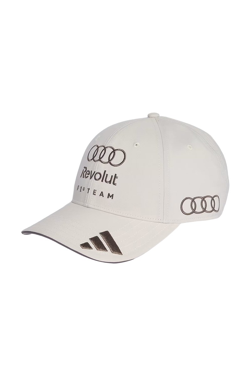 Casquette officielle Audi Revolut F1 Team adidas en Chalk Pearl. Design minimaliste pour fans de F1.