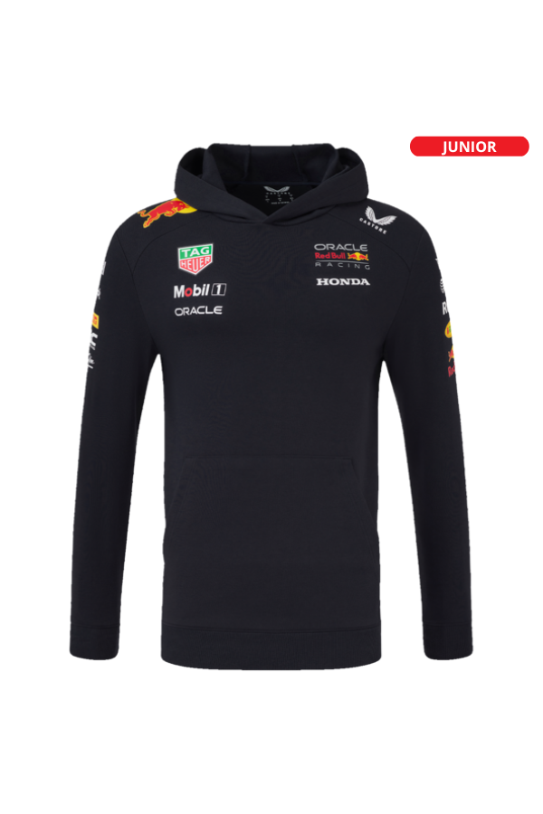 Sweat à capuche officiel Red Bull Racing 2025 pour enfants, conçu avec Castore. Confortable et stylé, il affiche les logos de l’équipe et des sponsors.