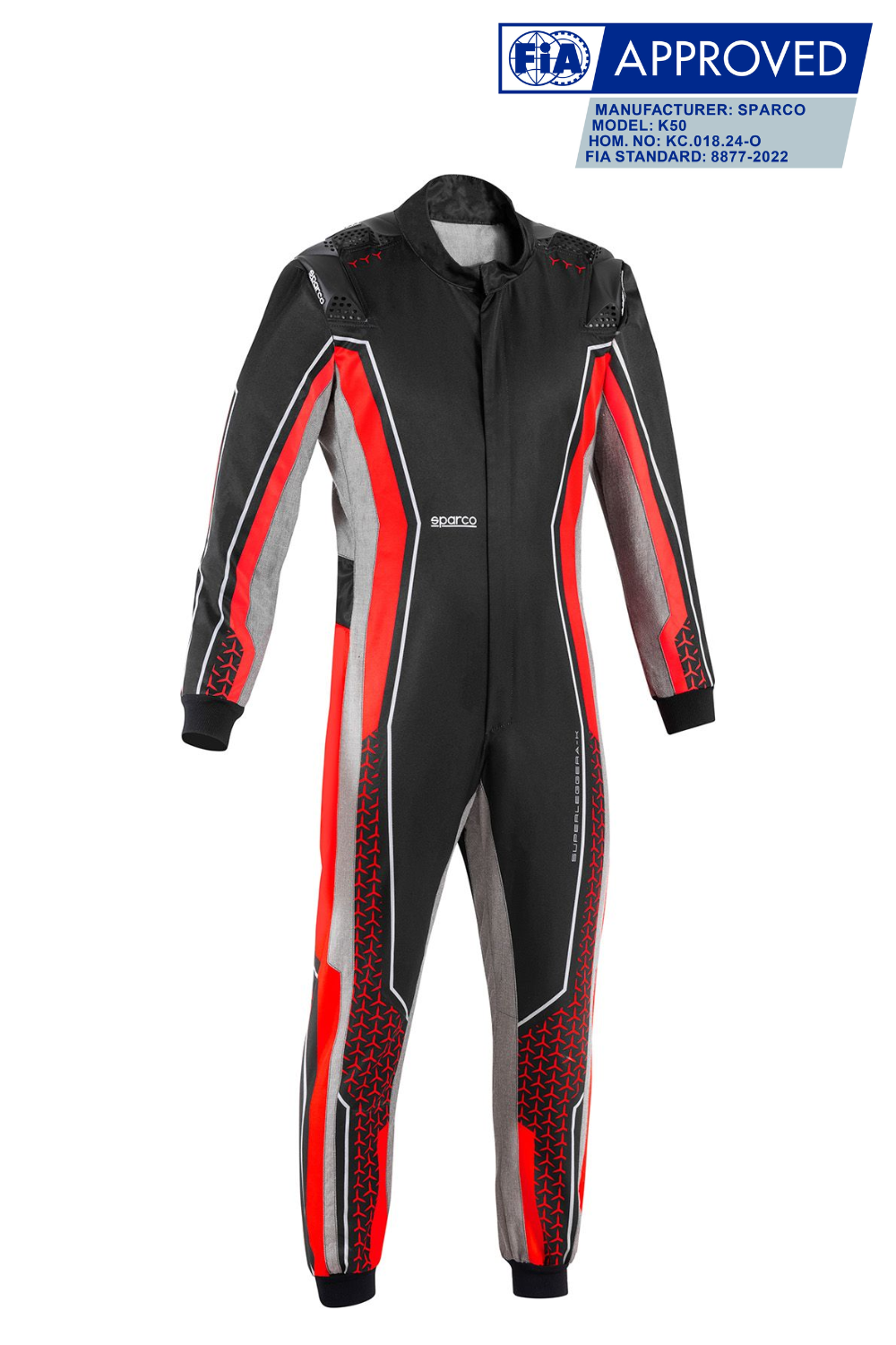La combinaison Sparco Superleggera K noir/rouge pour adulte allie légèreté, respirabilité et confort. Son tissu ultra-fin (300 g/m²) et ses zones ventilées assurent une performance optimale. Homologuée FIA 8877-2022.