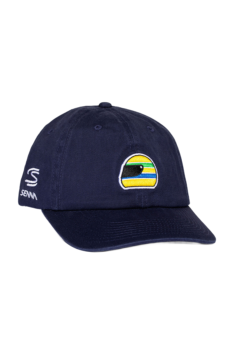 Ayrton Senna Helmet Washed Cap in navy met vintage look en iconisch helm design. Verstelbare F1 pet voor fans.