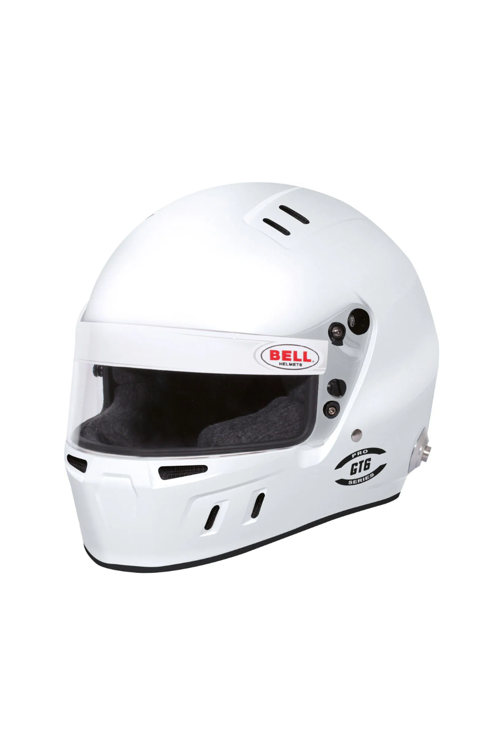 Bell GT6 Pro Wit helm, speciaal ontworpen voor gesloten voertuigen. Lichtgewicht composiet, groot gezichtsveld, uitstekende ventilatie en optimaal comfort. Voldoet aan FIA 8859-2024 en SNELL SA2020.