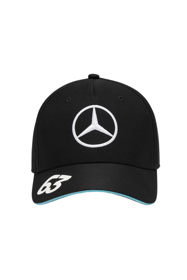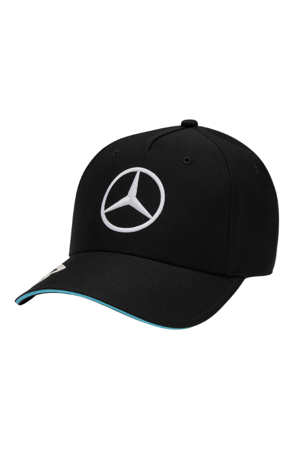 Pet Mercedes "George Russell": Zwart met een blauwe rand en het iconische nummer 44 van de coureur. De kwaliteit van de borduring van het nummer en het Mercedes-logo geeft deze pet een onberispelijke sportieve uitstraling, perfect voor alle fans.