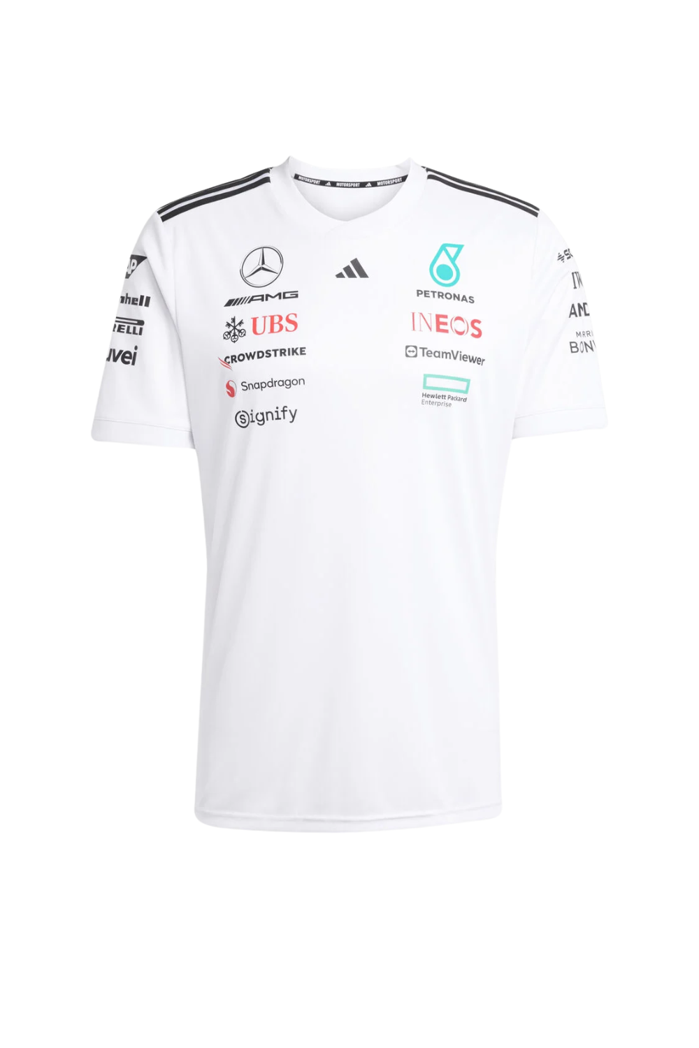 Officieel Mercedes F1 2025 t-shirt door Adidas in wit met AEROREADY-technologie en teamlogo's.