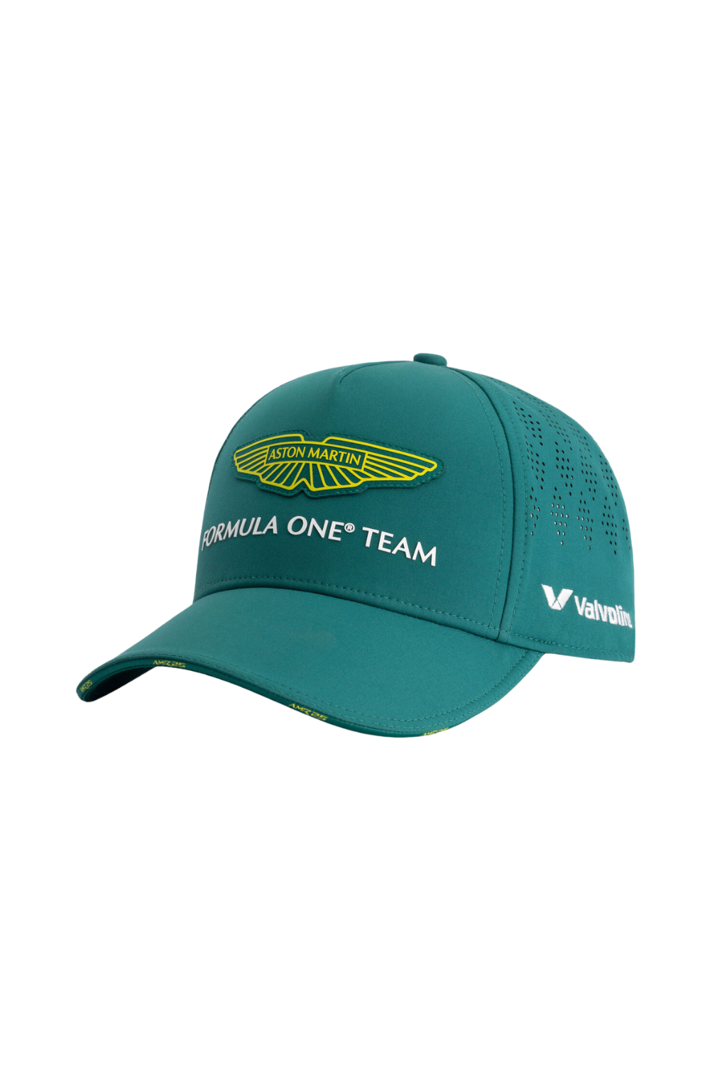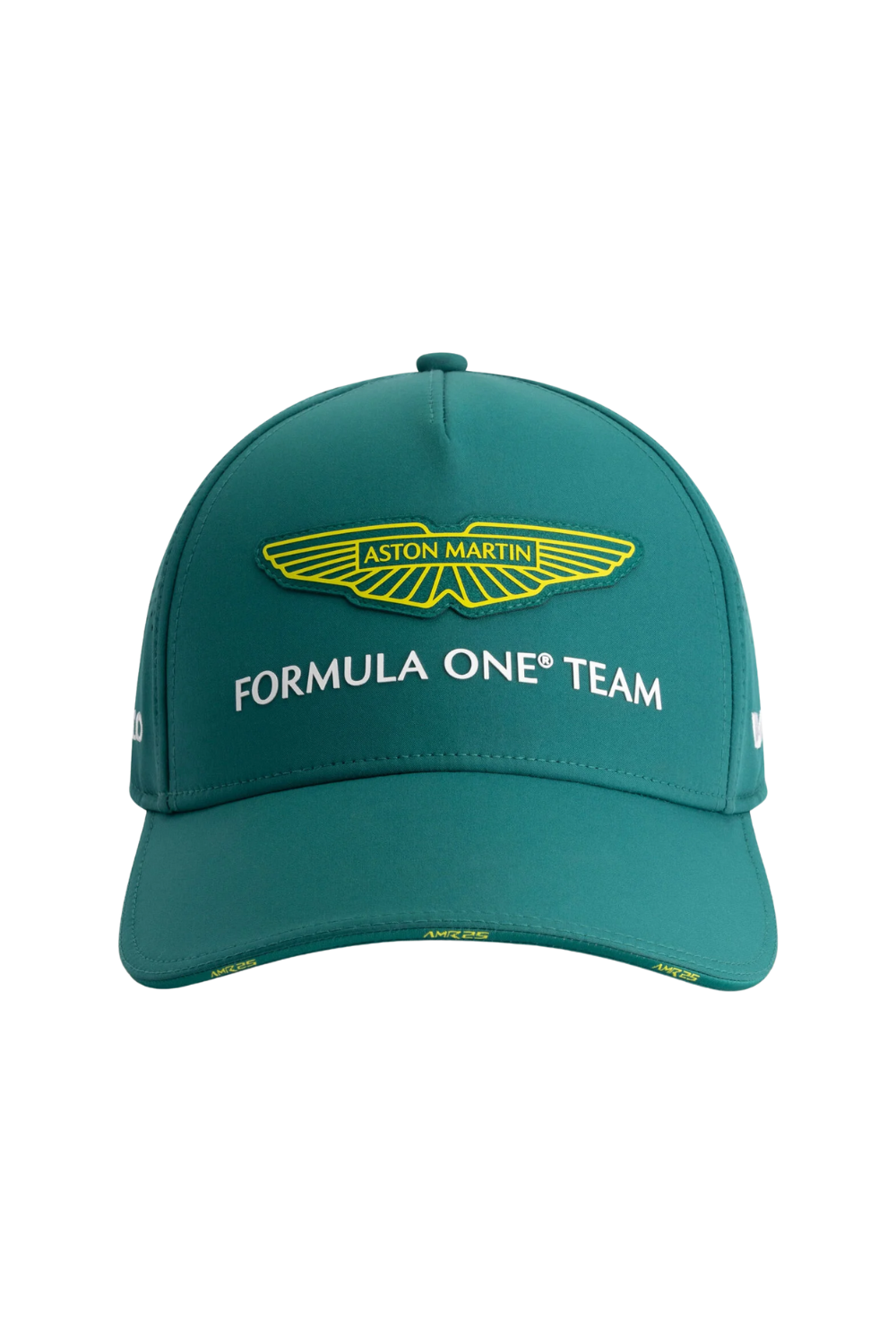 Officiële Aston Martin F1 2025 pet in groen met AMR25-details en partnerlogo's.