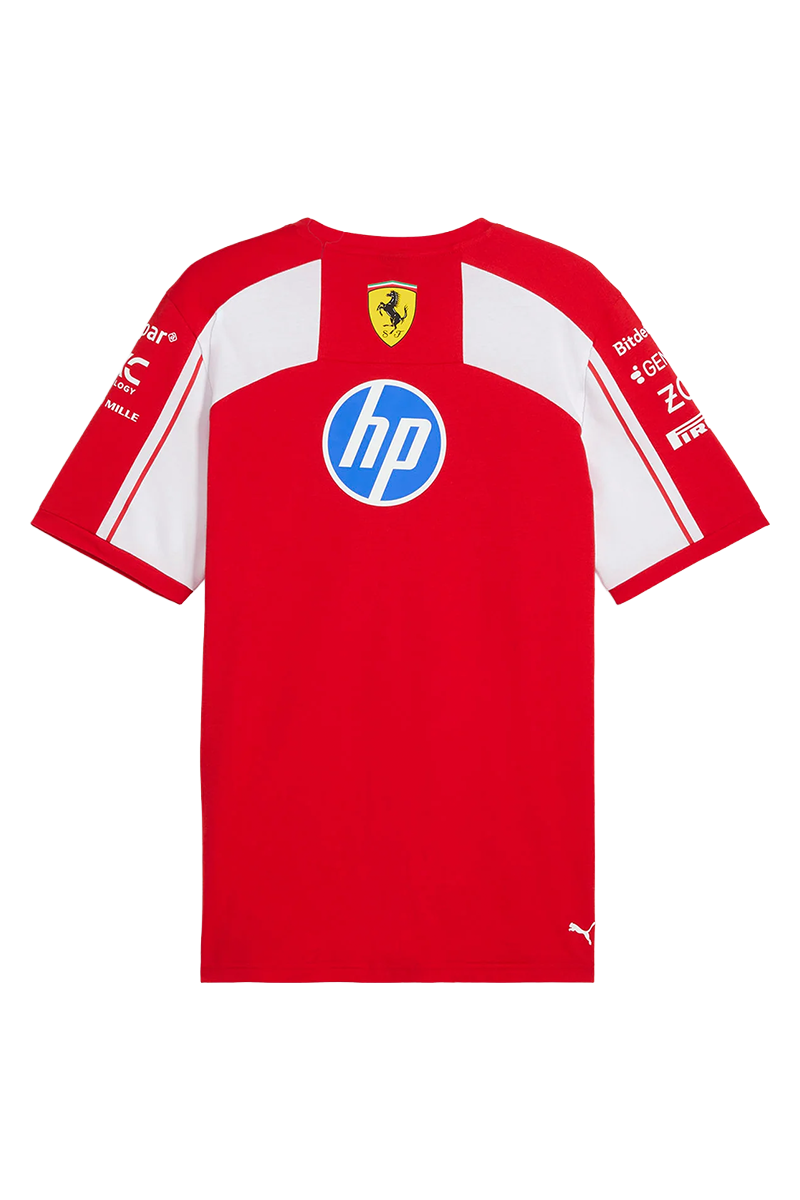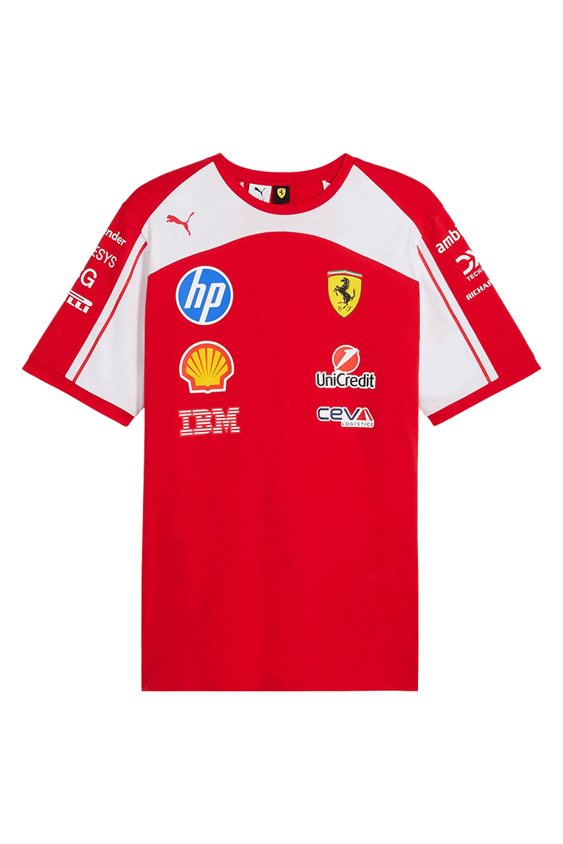 Officieel Scuderia Ferrari 2026 T-shirt van katoen met team- en sponsorlogo’s – gedragen door team en coureurs.